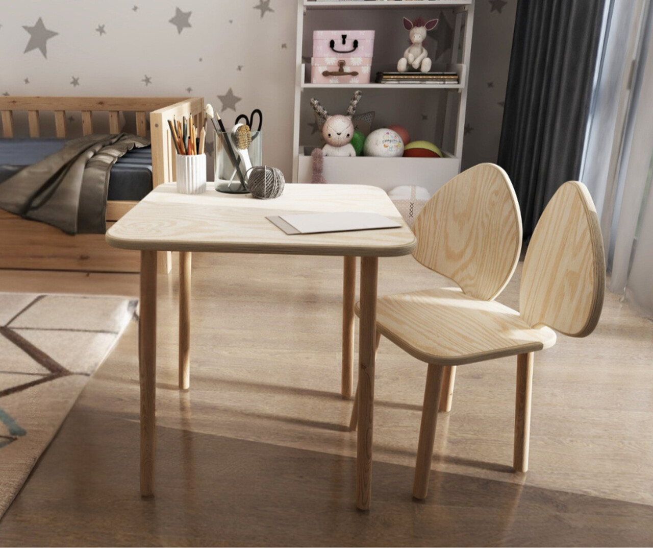 Stolik i krzesełko dla dziecka „Myszka” to idealne połączenie funkcjonalności, estetyki oraz bezpieczeństwa. Wykonane z wysokiej jakości sklejki liściastej, meble zachwycają minimalistycznym designem i naturalnym wykończeniem, które doskonale komponuje się z każdym dziecięcym wnętrzem.